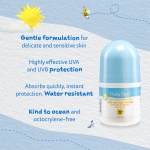 Very high protection SPF 50+ sunscreen. Handy roll-on format. Suitable for sensitive skin. Protects skin against UVA and UVB rays