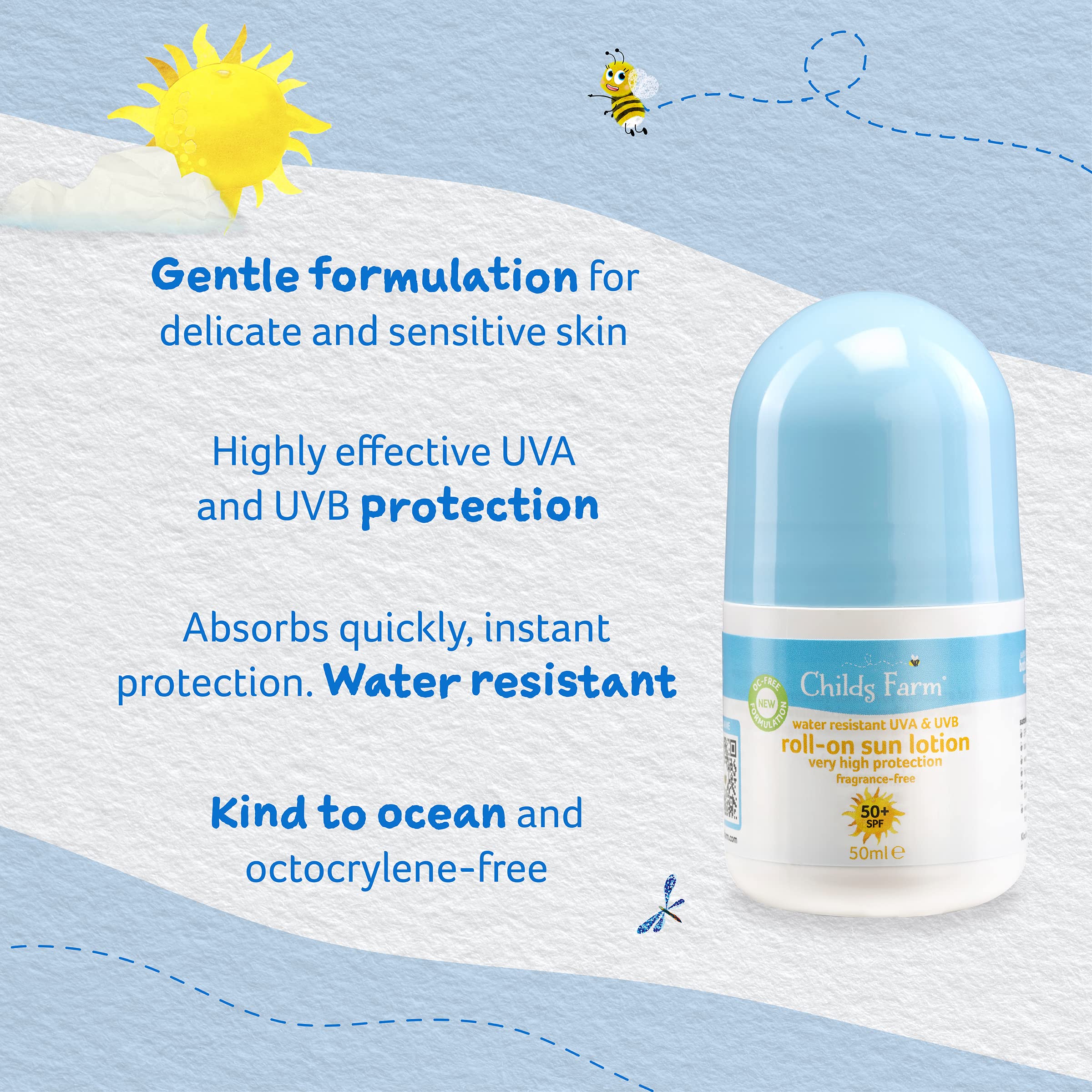 Childs Farm Kids And Baby Sun Lotion Roll-On SPF 50plus Water Resistant UVA And UVB Very High Protection Suitable Dry, Sensitive And Eczema-prone Skin 50ml, White, 1, 85.65 Grams