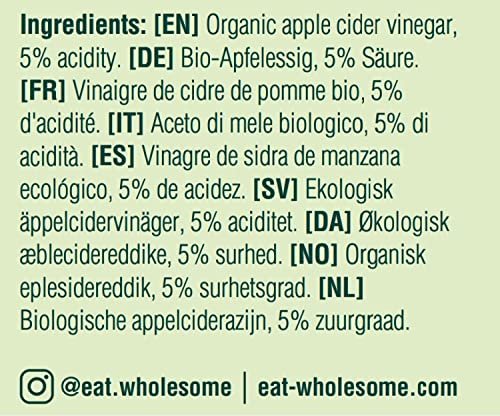 Eat Wholesome Organic Raw Apple Cider Vinegar with the Mother is naturally fermented, unfiltered and unpasteurised (Great Taste Award with 2 stars, 2018). It is artisan made with handpicked cold-pressed apples and delicious drizzled on a salad or taken as an invigorating drink.