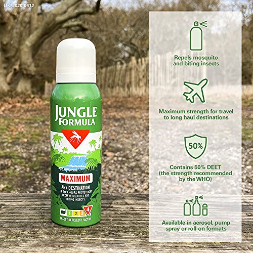 - Any destination: Jungle Formula Maximum aerosol is a suitable travel companion that offers maximum protection for areas with a high risk of malaria and other insect-transmitted diseases