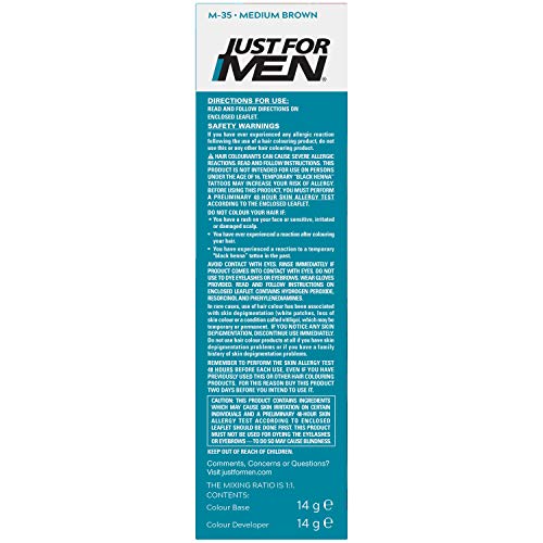 New look, same great results. Just For Men Mustache & Beard, Medium Brown, M35, is beard colouring that makes getting rid of grey facial hair easy. Unlike other dyes, this beard colour is formulated specifically for coarser facial hair. Eliminates grey for a thicker and fuller look.