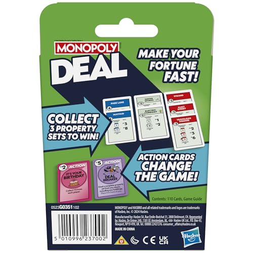 QUICK-PLAYING MONOPOLY CARD GAME: swap, steal and scheme in the Monopoly Deal card game – a family favourite! It’s all the fun of the Monopoly game in a fast-paced card game for children and adults.