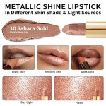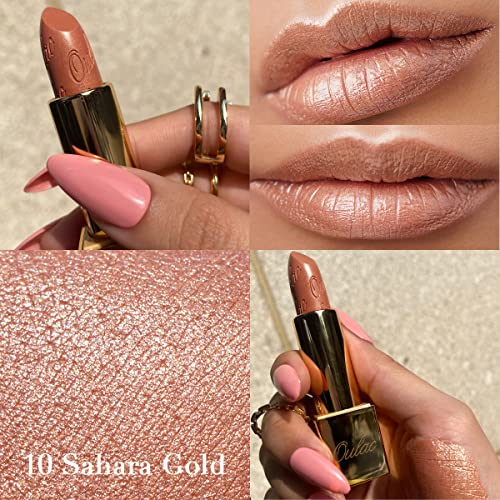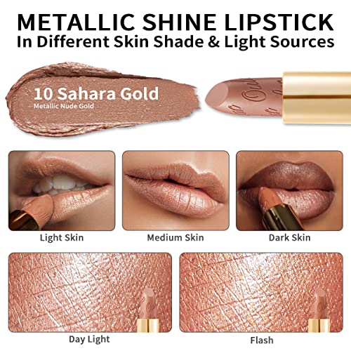 OULAC Metallic Shine Glitter Lipstick, Nude High Impact Lipcolor, Lightweight Soft and Ultra Hydrating, Long Lasting, Vegan & Cruelty-Free, Full-Coverage Lip Color 4.3 g/0.15 Sahara Gold(10)
