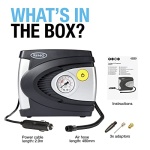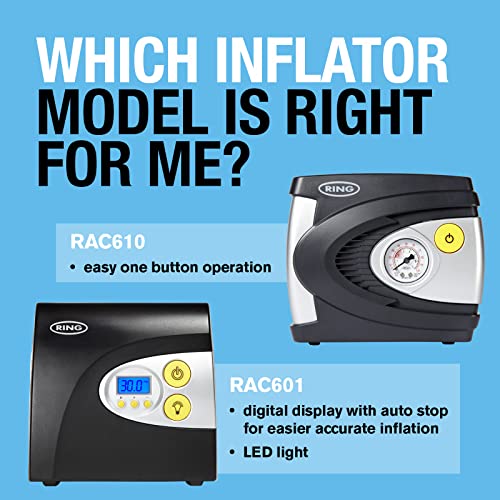 Ring Automotive – RAC610 12v electric tyre inflator air compressor car pump with pressure gauge and valve adaptors for car, motorbike, bike, ball and inflatables