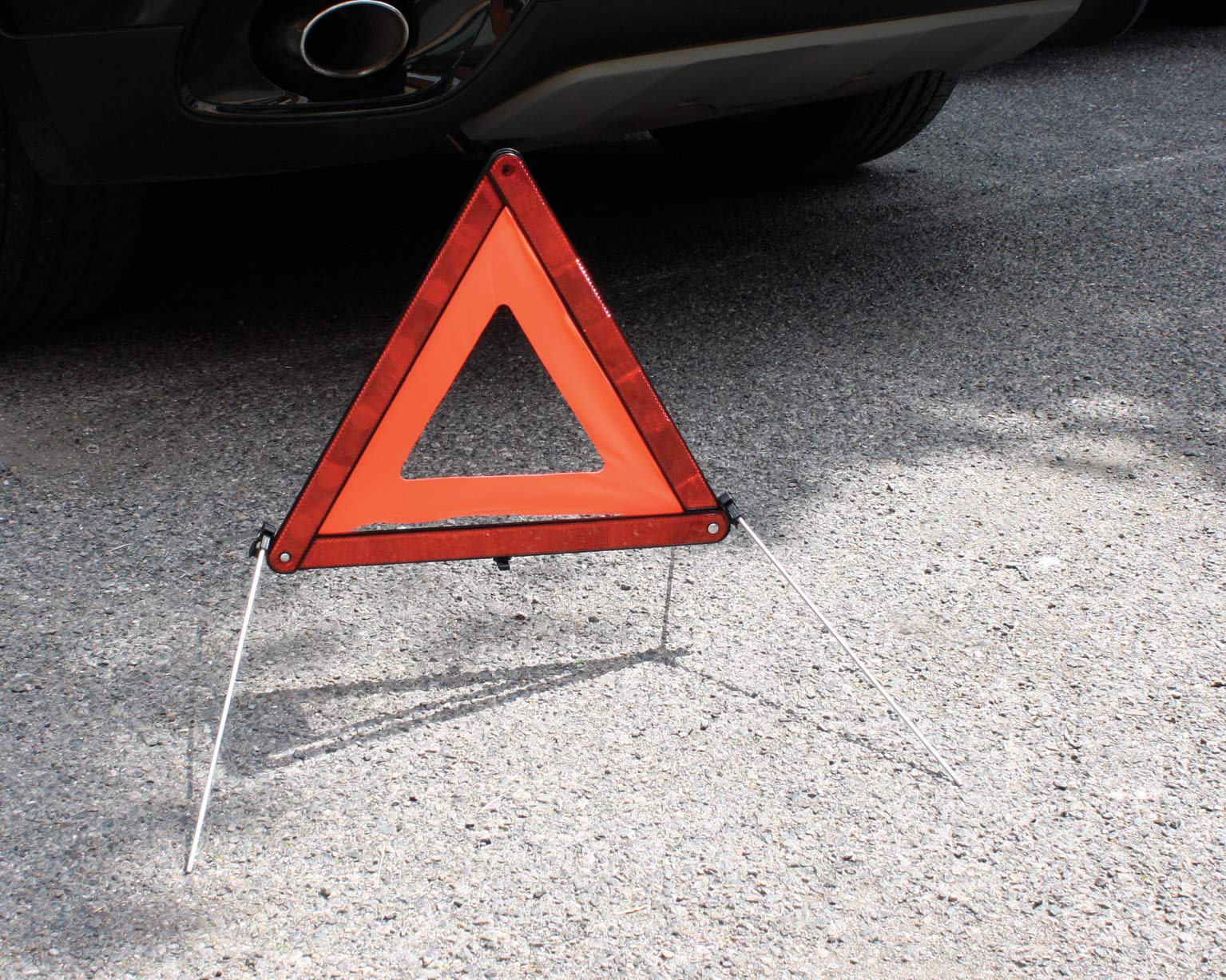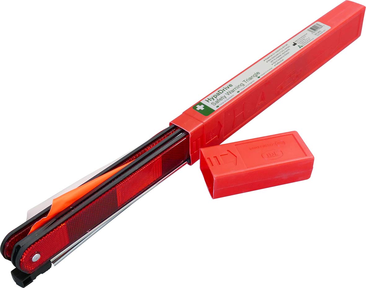 Details: The HypaDrive Safety Triangle is a warning sign that can be used to signal oncoming traffic in the case of an accident or breakdown. It is a useful tool that is also a legal requirement in many countries. The triangle is foldable and supplied in a rugged composite case that is easily stored. The durable sign is also wind-tested to withstand up to 60kph (37mph) winds.